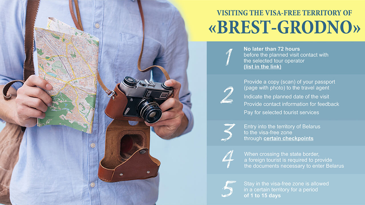Foreign visitors can enter Belarus visa-free to visit the “Brest-Grodno” tourist visa-free zone for the period up to 15 days.